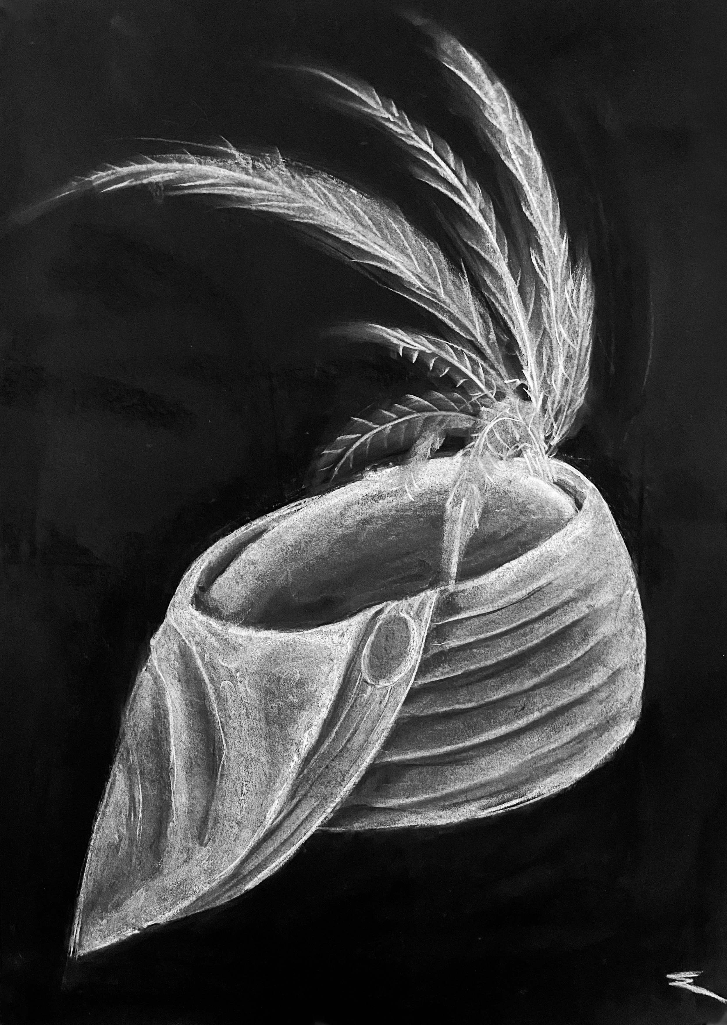 White and black Charcoal on black paper