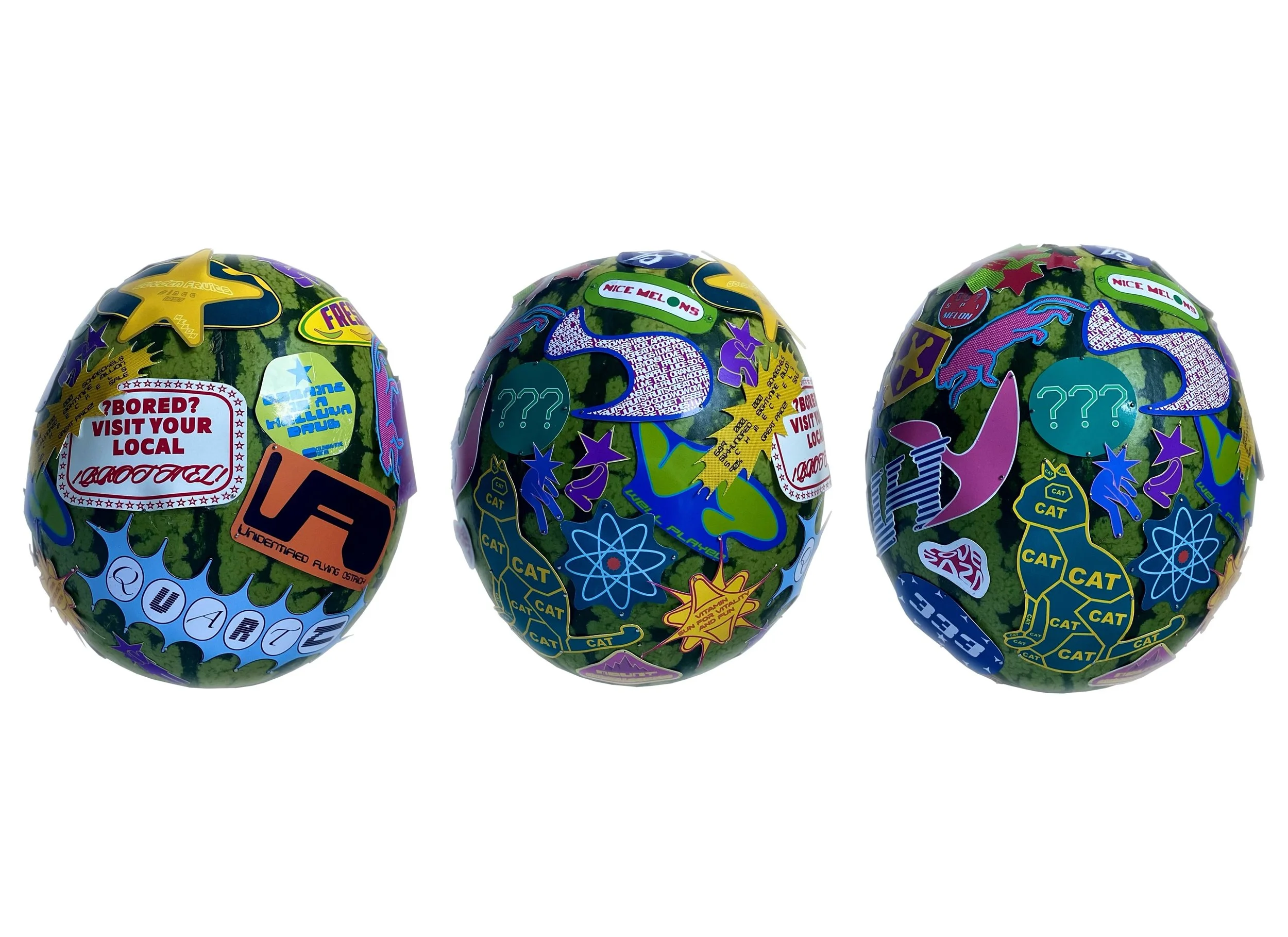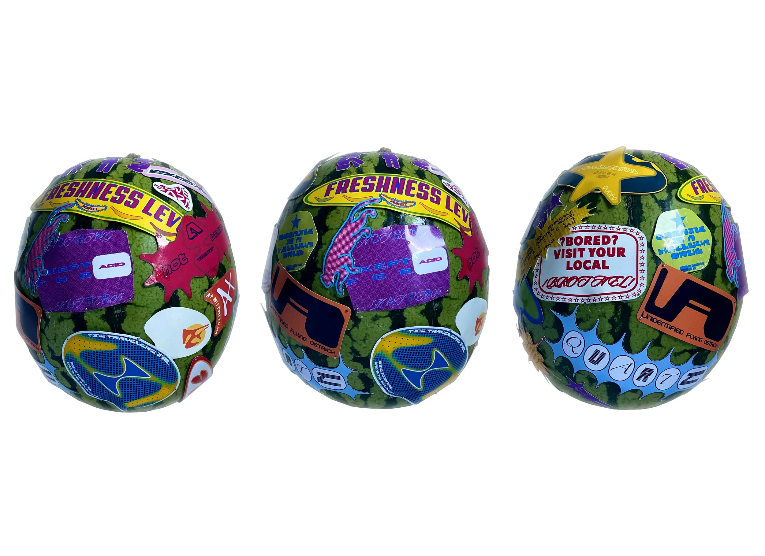 for the finished result i decided to place the melons in threes on one page each showing all the stickers.I also made a stop motion video of the melon and all its sides to better show that the stickers envelop the whole melon.